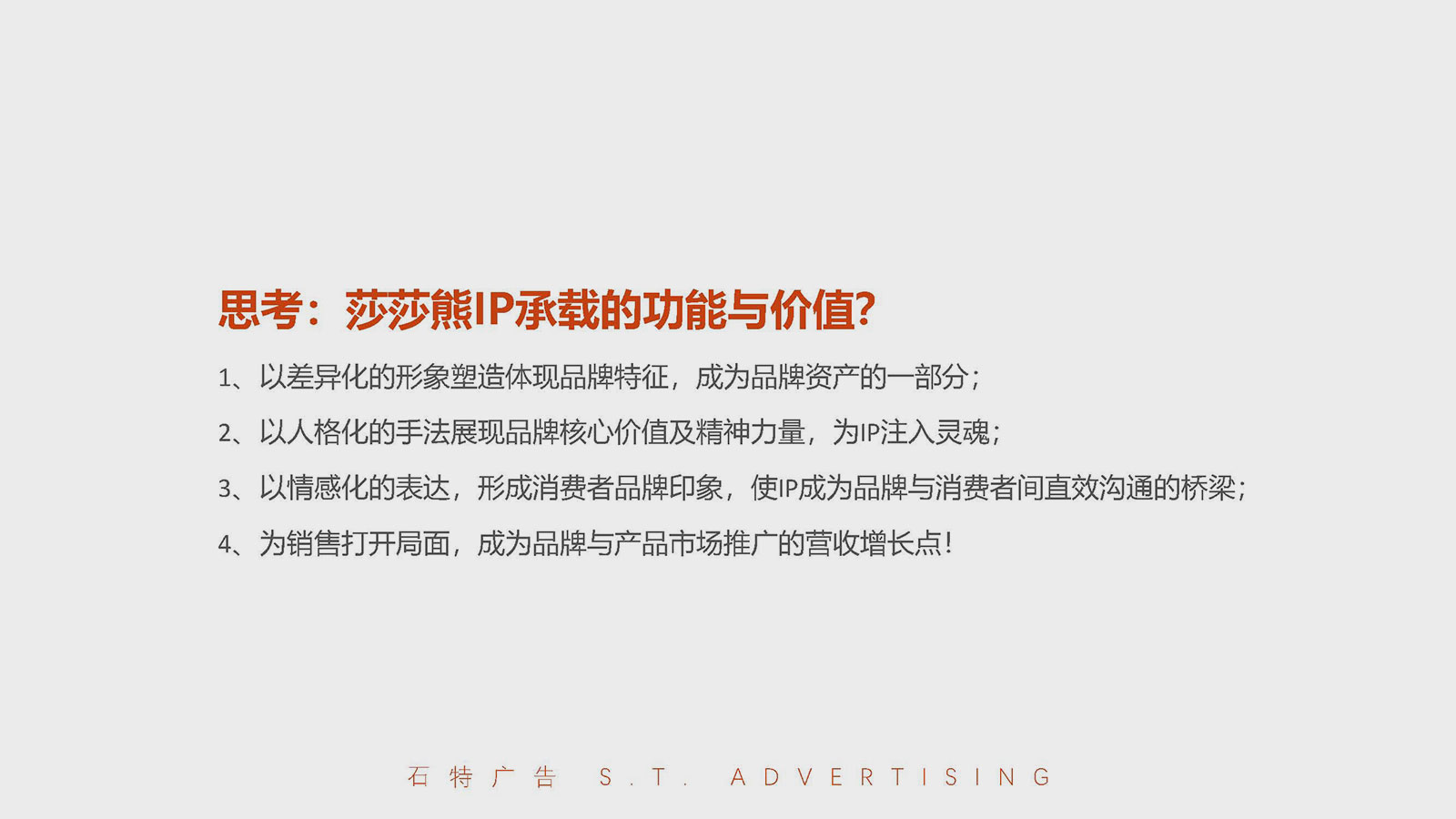通過(guò)對(duì)兒童冰淇淋市場(chǎng)的核心洞察及人群定位,我們將目標(biāo)群體鎖定在00后及10后。透過(guò)對(duì)企業(yè)及品牌的自我審視,基于Z世代消費(fèi)洞察以及80/90年輕一代父母的消費(fèi)選擇,我們賦予莎莎熊品牌“安全、新趣、快樂(lè)”的基因,基于品牌的核心定位,展開(kāi)莎莎熊品牌文化、內(nèi)容、形象、包裝的策劃設(shè)計(jì)之路。我們以年輕、快樂(lè)、新潮的logo字體設(shè)計(jì)與色彩組合形成品牌獨(dú)特的視覺(jué)記憶點(diǎn);我們以北極熊為原型,創(chuàng)作莎莎熊專(zhuān)屬的IP形象——Shakesbear(搖擺熊),并賦予其健全的人格、動(dòng)人的故事、歡快的動(dòng)作,力圖跟大小朋友們打成一片;產(chǎn)品策劃部分,我們提出“純奶源,少添加”、“小分量,更健康”的產(chǎn)品核心定位,并將品牌形象色彩及風(fēng)格淋漓盡致地展現(xiàn)到包裝上。新消費(fèi)升級(jí)時(shí)代,冰淇淋市場(chǎng)之爭(zhēng)愈發(fā)激烈,精準(zhǔn)的品牌定位、創(chuàng)意的品牌形象、豐富的內(nèi)容傳播將是莎莎熊品牌成功開(kāi)啟市場(chǎng)的三把密鑰。新領(lǐng)域、新市場(chǎng)、新賽道,石特助力新勢(shì)力快速啟動(dòng),全力為新品牌保駕護(hù)航!
