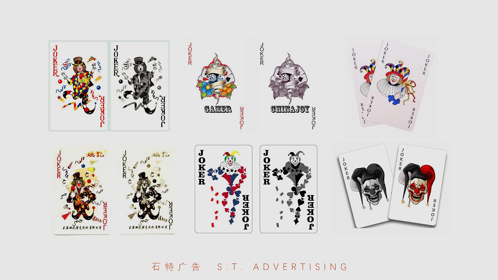 撲克牌中的兩張大王小王,即小丑牌,外文名The clown card,兩個小丑代表是太陽和月亮,是一副撲克中最特殊的存在。在撲克牌剛剛傳入美國的時候還沒有小丑牌。發售撲克的廠家會在一副牌中額外放幾張和撲克質地一樣的廣告牌,以Joker作為與廣告品或文字的互動形象出現。這樣慢慢發展,在斗地主中,或者一些游戲中,王牌成為了任意牌。