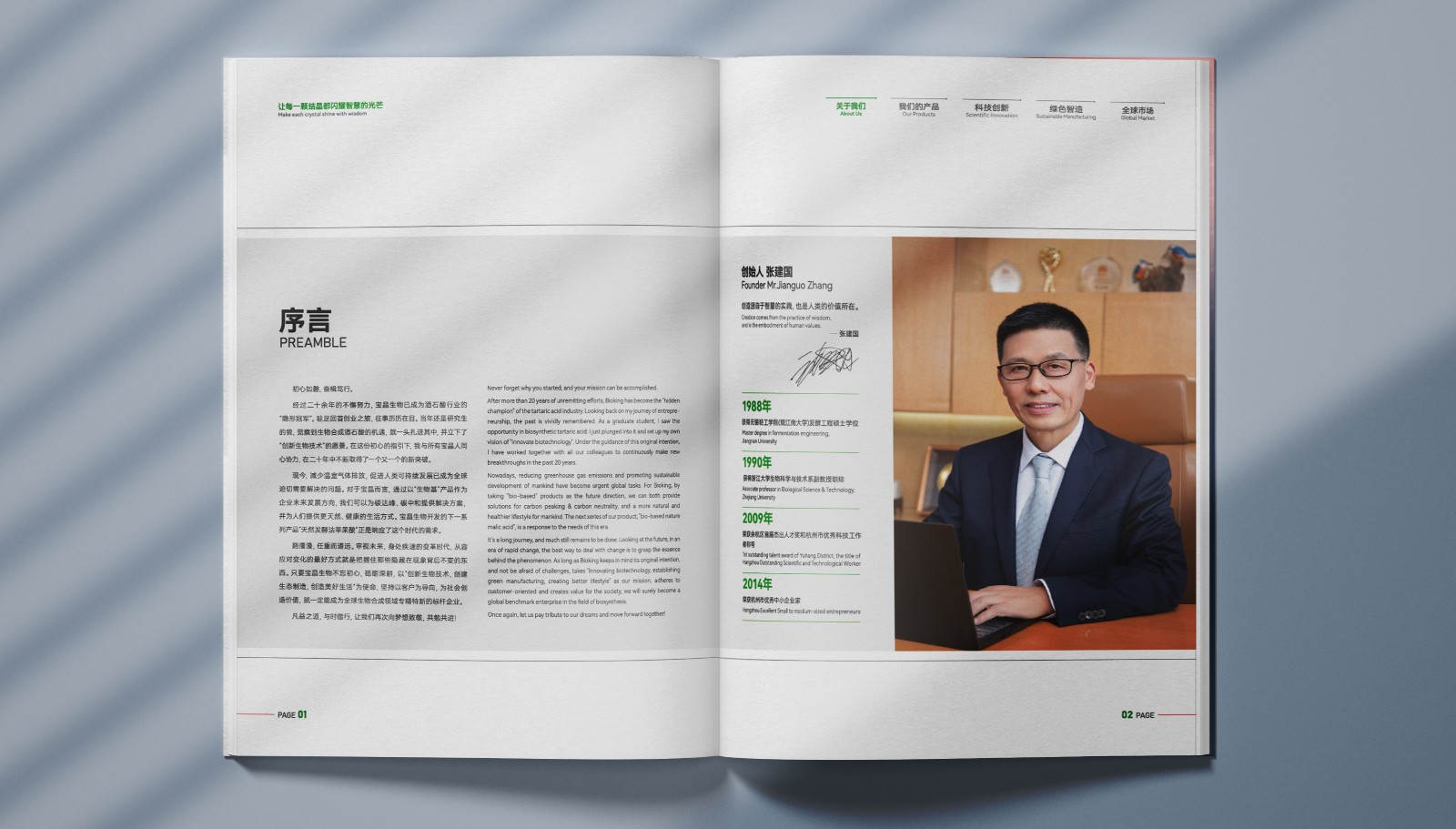 2、在設計宣傳冊時創始人書寫序言,賦予深厚含義,并將公司的技術實力、產品特點、市場應用、發展前景以及企業文化等方面進行全面的展示。