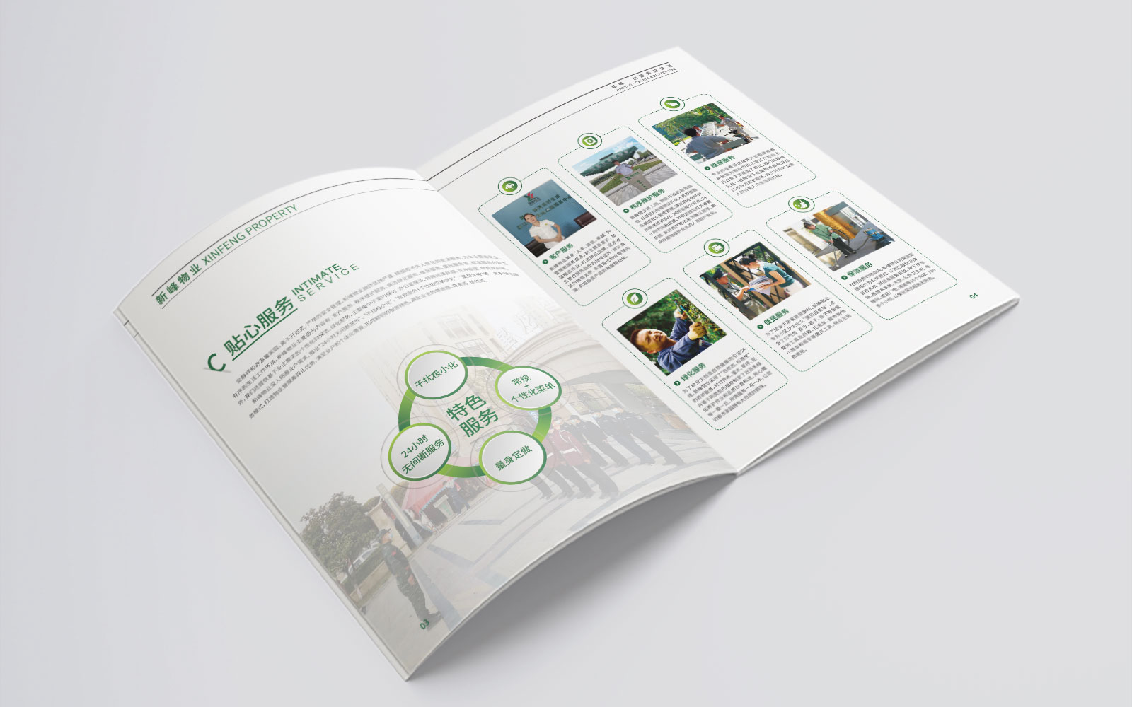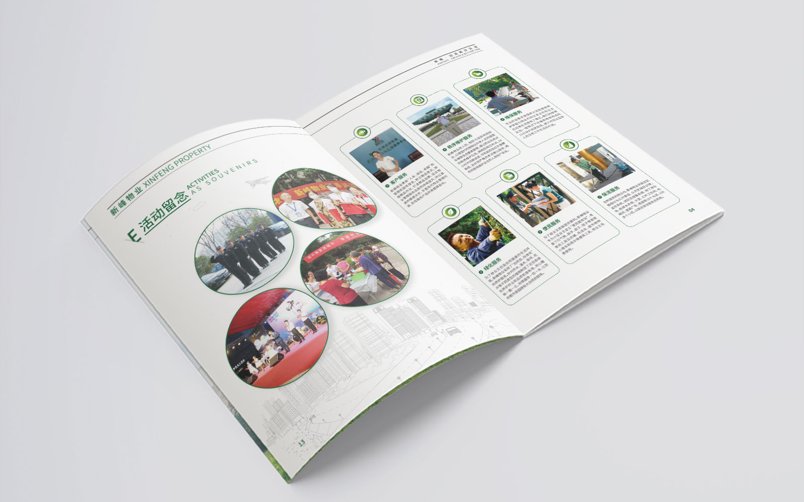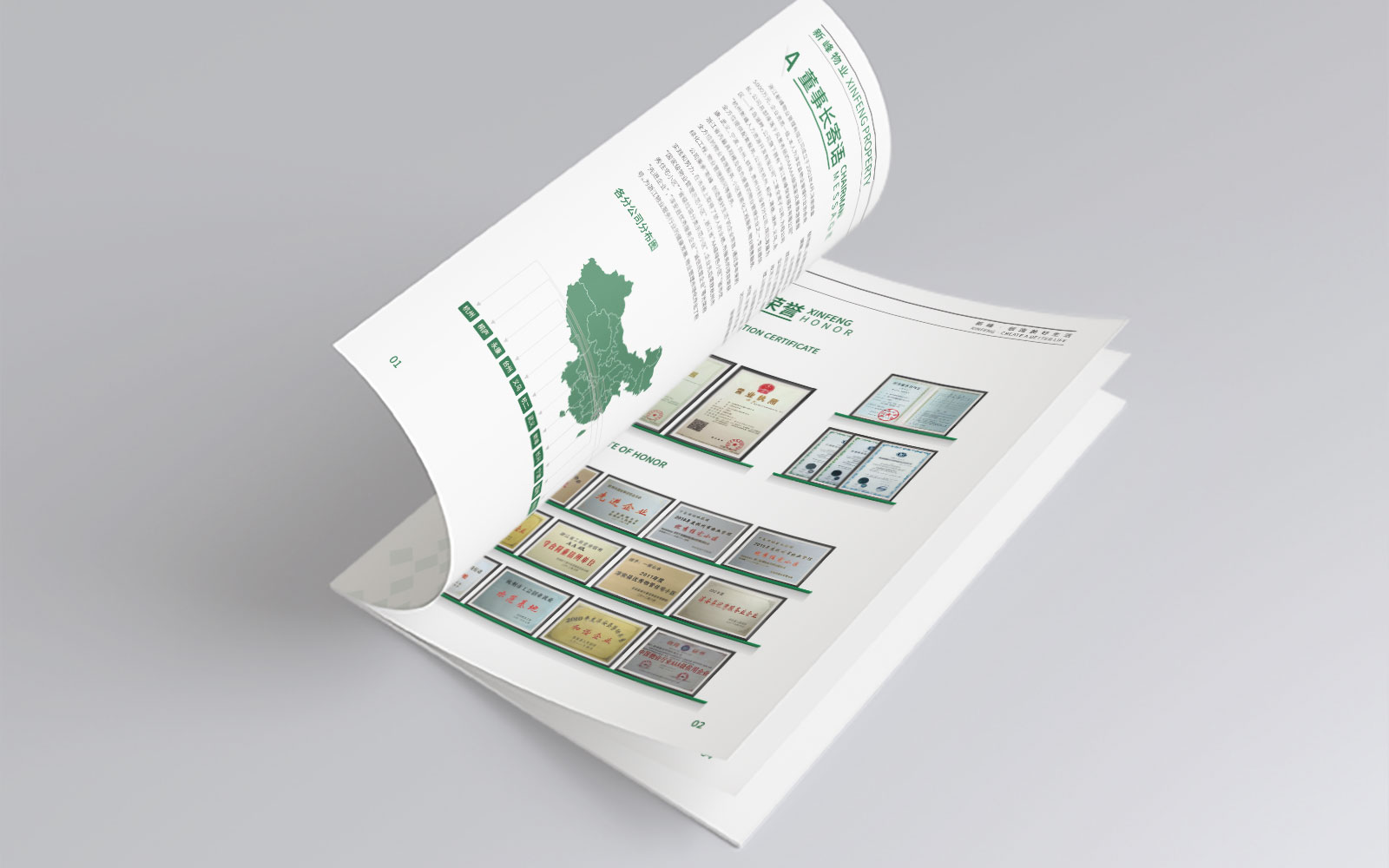 畫冊設(shè)計(jì)簡約明晰,以展示企業(yè)概況為主要用途,綠色環(huán)保概念是新峰的企業(yè)可持續(xù)發(fā)展戰(zhàn)略之一。石特廣告充分貫徹新峰物業(yè)的理念,設(shè)計(jì)好一本畫冊。
