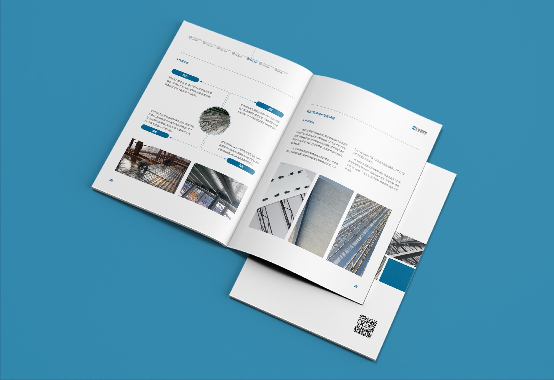 二、色彩搭配:宣傳冊整體采用沉穩(wěn)的藍(lán)灰色調(diào),象征鋼筋桁架樓承板的堅(jiān)固與穩(wěn)定。同時(shí),搭配明亮的金色或銀色,用于突出關(guān)鍵信息和產(chǎn)品特點(diǎn),提升視覺沖擊力。