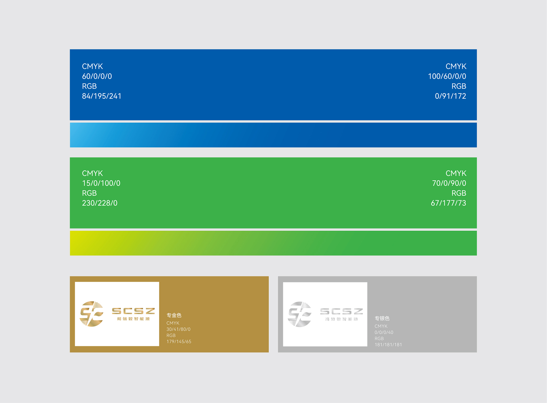商儲數智能源視覺識別系統,通過嚴格標準化的語言和系統化的視覺符號,將商儲數智能源的服務宗旨、行為和功能傳送給社會公眾,具有突出商儲數智能源服務的功能,起到強化品牌形象的作用。標志釋義:1、以字母 S和負形 C 為主體,結合業務的儲能模塊,形成的圓,代表著我們為之奮斗的事業,整體壁合天成,獨具匠心,向世界展示了作為儲能企業自信的一面--數智商儲,能創未來。 2、筆畫模塊交錯平行,代表我們深耕技術,創新產品,同時也展現了我們縱橫天下,行道載道的胸襟與志向。 3、設計中巧妙運用正形和負形的互換,以及視覺的連貫性,既體現了“閃電”的符號之美,又使圖形結構氣脈疏通,代表了我們開拓創新的意向。 4、中部的靈動的綠葉,一則點明我們的綠色能源屬性,二則蘊含飄揚的旗幟之意,代表著我們將高舉行業旗幟,為用戶提供一流的產品和解決方案,三則如同車窗造型,代表我們的事業是溝通能源事業的窗口。 5、品牌標識整體采用左右對稱的布局,左右均衡平穩,中間略微傾斜,產生動態的前進感,嚴謹容,動靜兼備。色彩源自科技的藍色代表了信守與創新,源自能源的綠色,代表了生命與傳承。