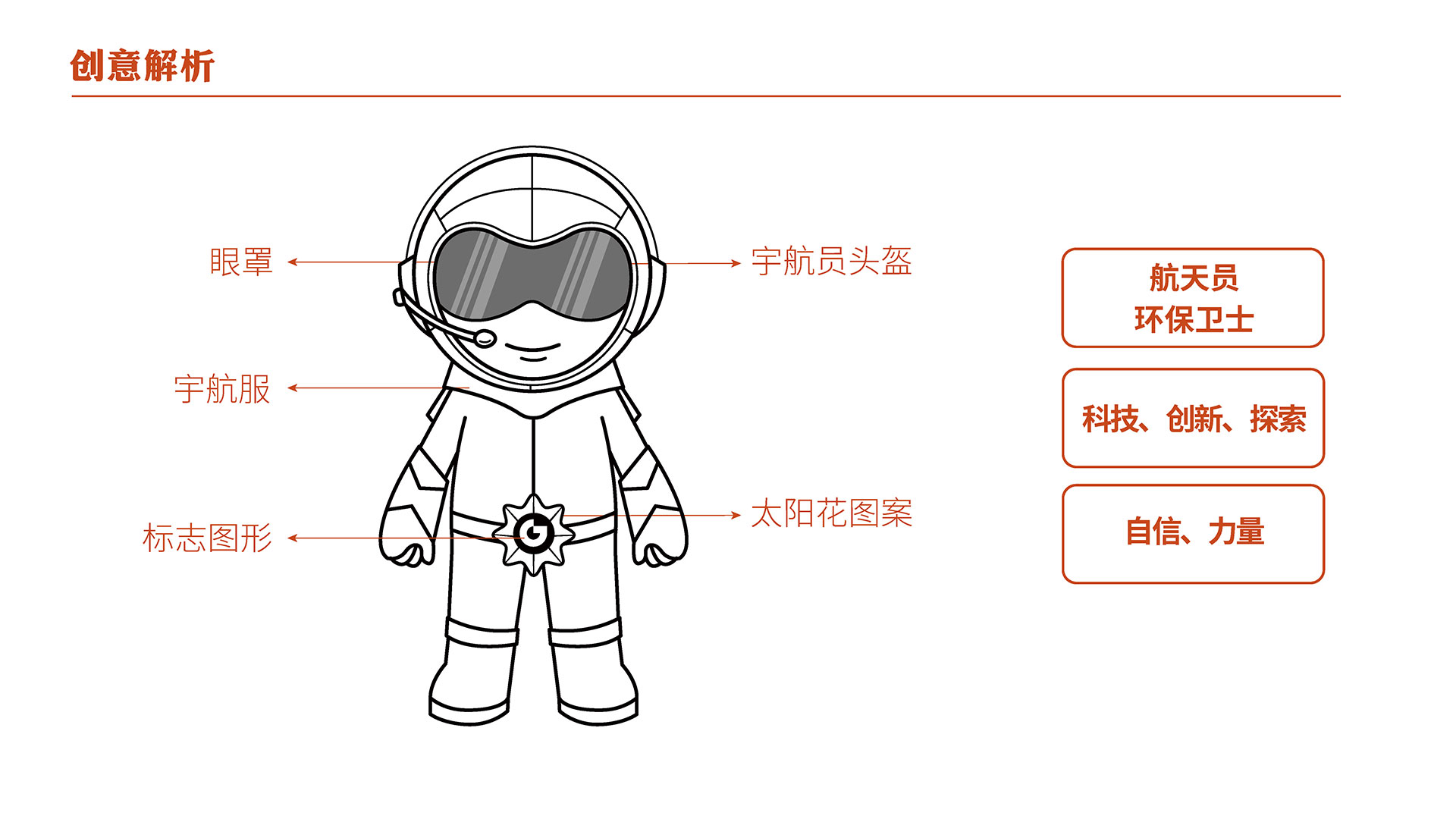 • 視覺設計:采用“宇宙太空人”原型,結合銀灰與亮藍色調,傳遞科技未來感;圓潤身形與動態姿勢(如手持環保設備)平衡穩重與活力,增強記憶點。