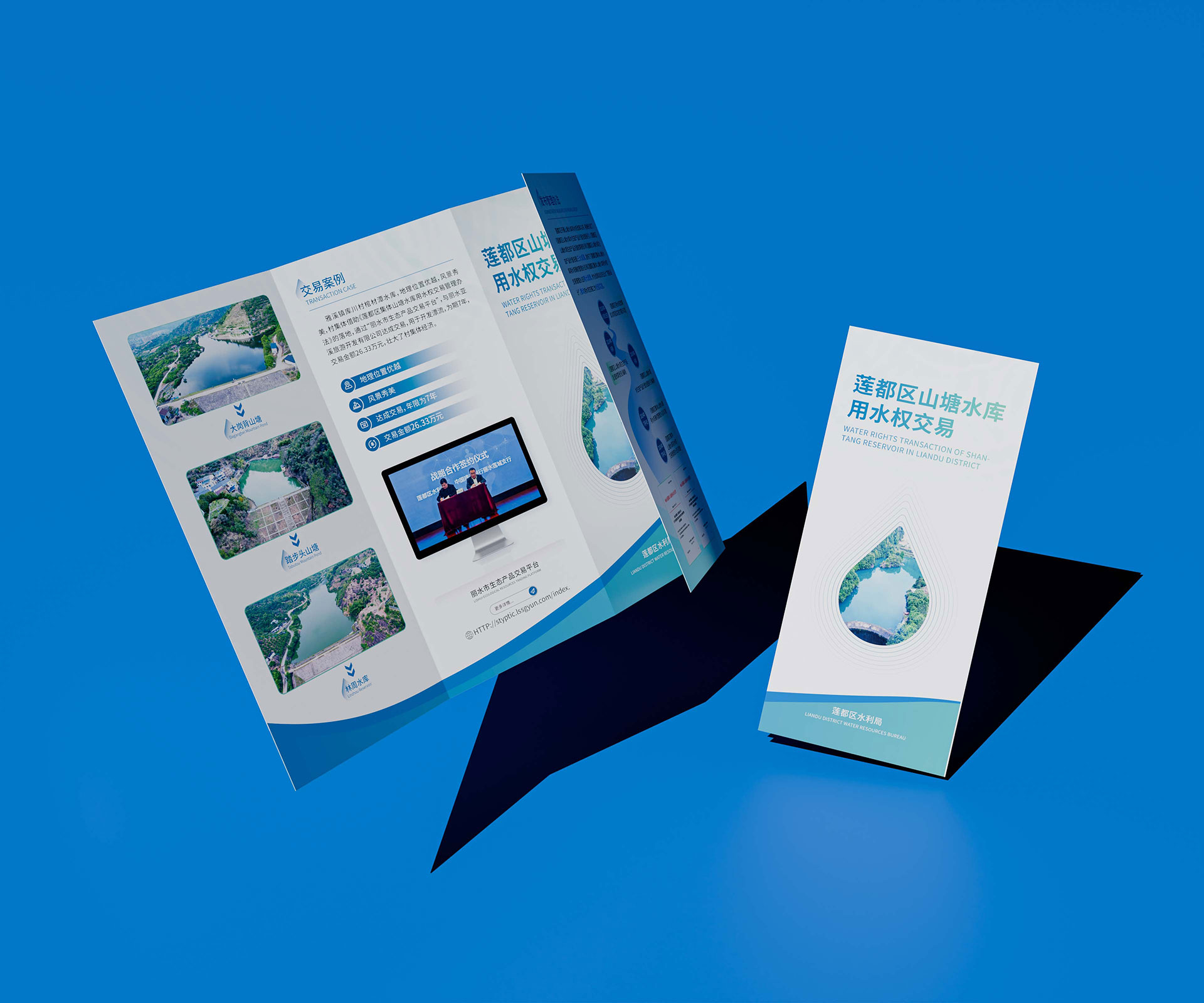 生態產品價值可視化典范:杭州石特廣告設計打造麗水蓮都山塘水庫四折頁
