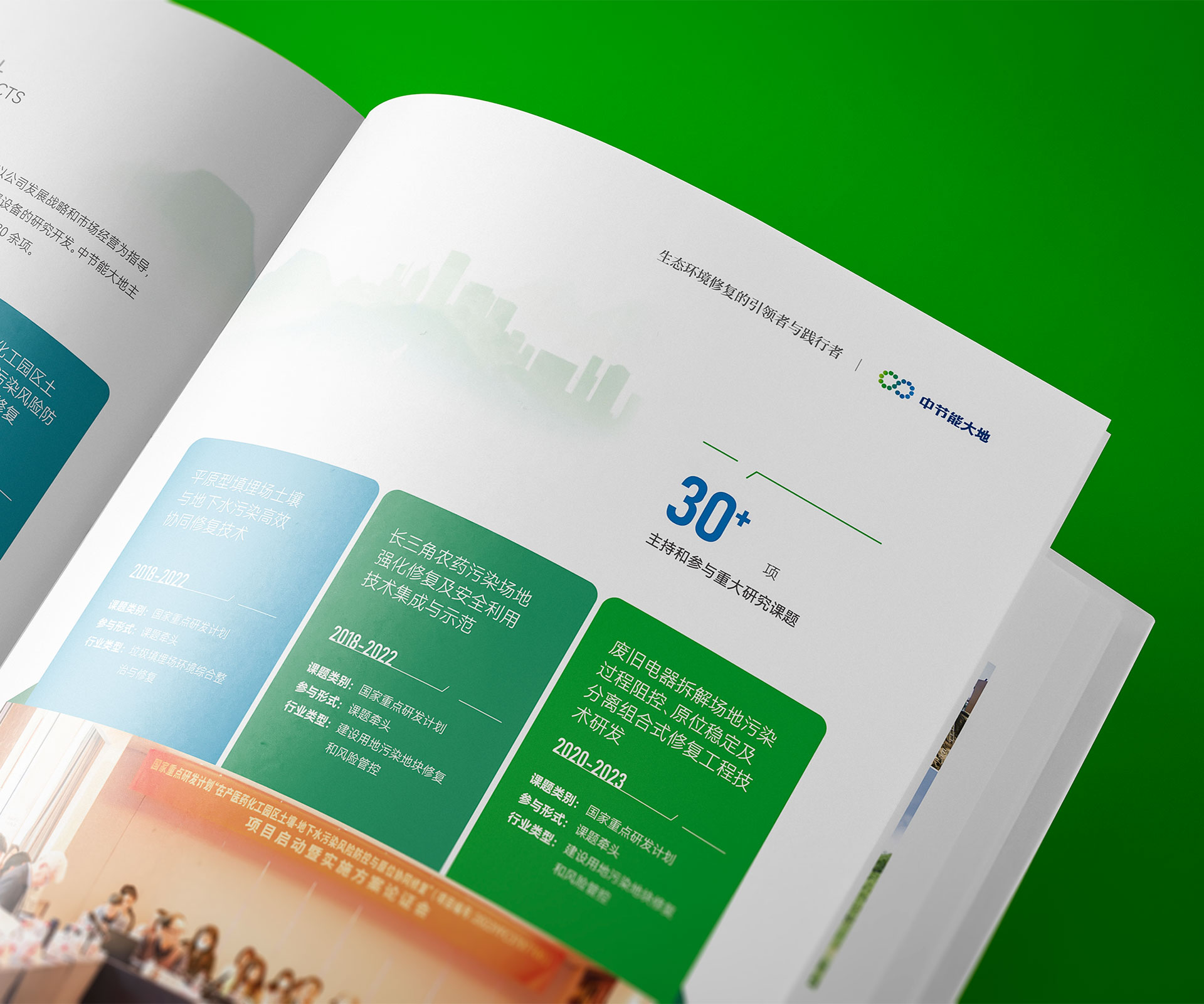 中節能大地(杭州)環境修復有限公司,作為央企旗下專注環境修復的實力企業,在行業內深耕多年,成果斐然。為進一步提升品牌影響力,拓展業務版圖,特別是在國企、政府相關環保項目合作中凸顯優勢,委托石特廣告策劃進行宣傳畫冊的全方位策劃設計印刷。項目旨在通過一本高質量畫冊,深度呈現中節能大地(杭州)的央企背景實力、前沿環境修復技術、豐富項目經驗及卓越社會責任,助力其在環保市場競爭中脫穎而出,吸引更多優質合作資源。