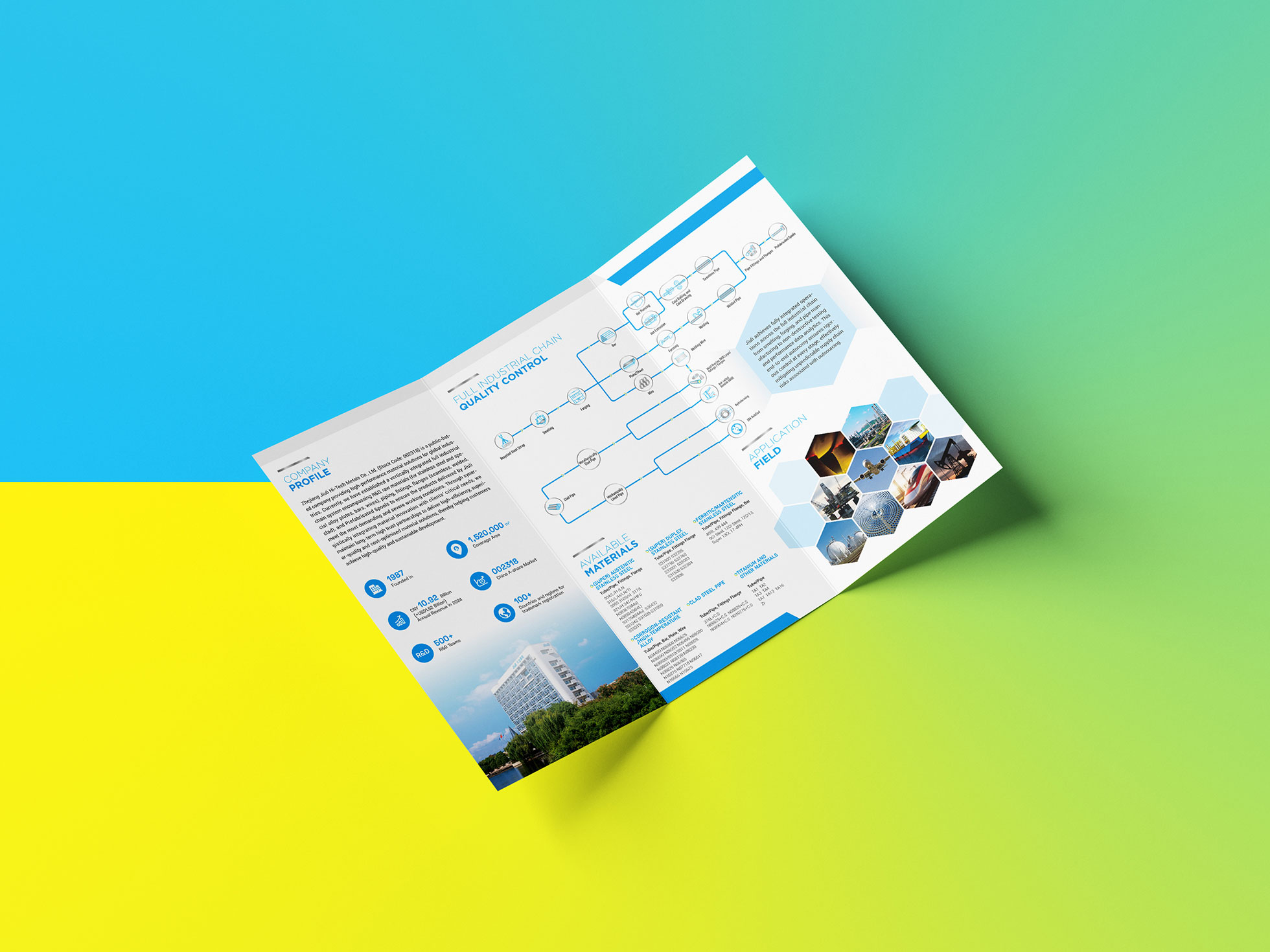 本項目是石特廣告為上市公司浙江久立特材科技股份有限公司量身定制的中英文雙語精品三折頁。面對全球高精尖材料市場的競爭格局,久立特材需要一款既能彰顯企業科技實力與品牌高端形象,又便于在國內外展會、客戶拜訪中高效傳遞核心信息的宣傳利器。石特廣告以“戰略濃縮,價值傳遞”為核心理念,將復雜的技術與產品體系,凝練于一方精致的折頁之中。它不僅是內容的載體,更是一件融合頂級印刷工藝與數字化接口的品牌藝術品,完美實現了線下實體體驗與線上數字拓展的無縫連接。