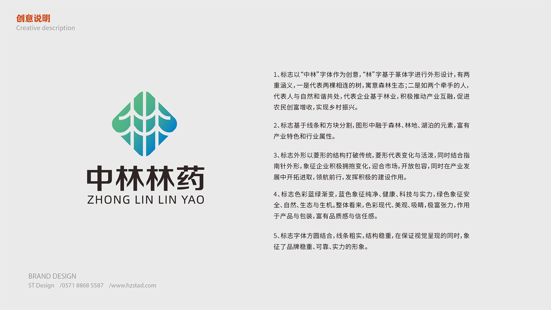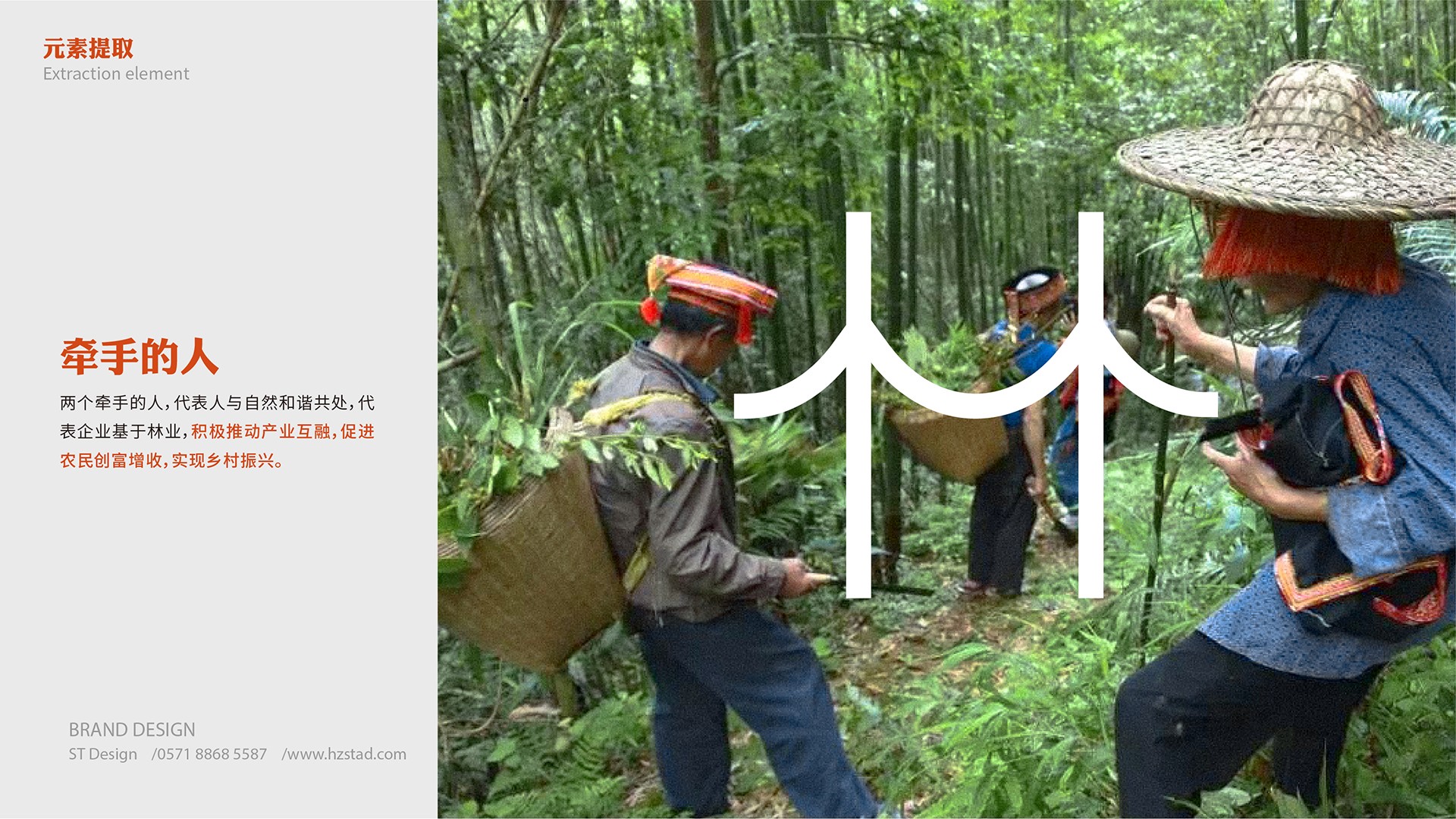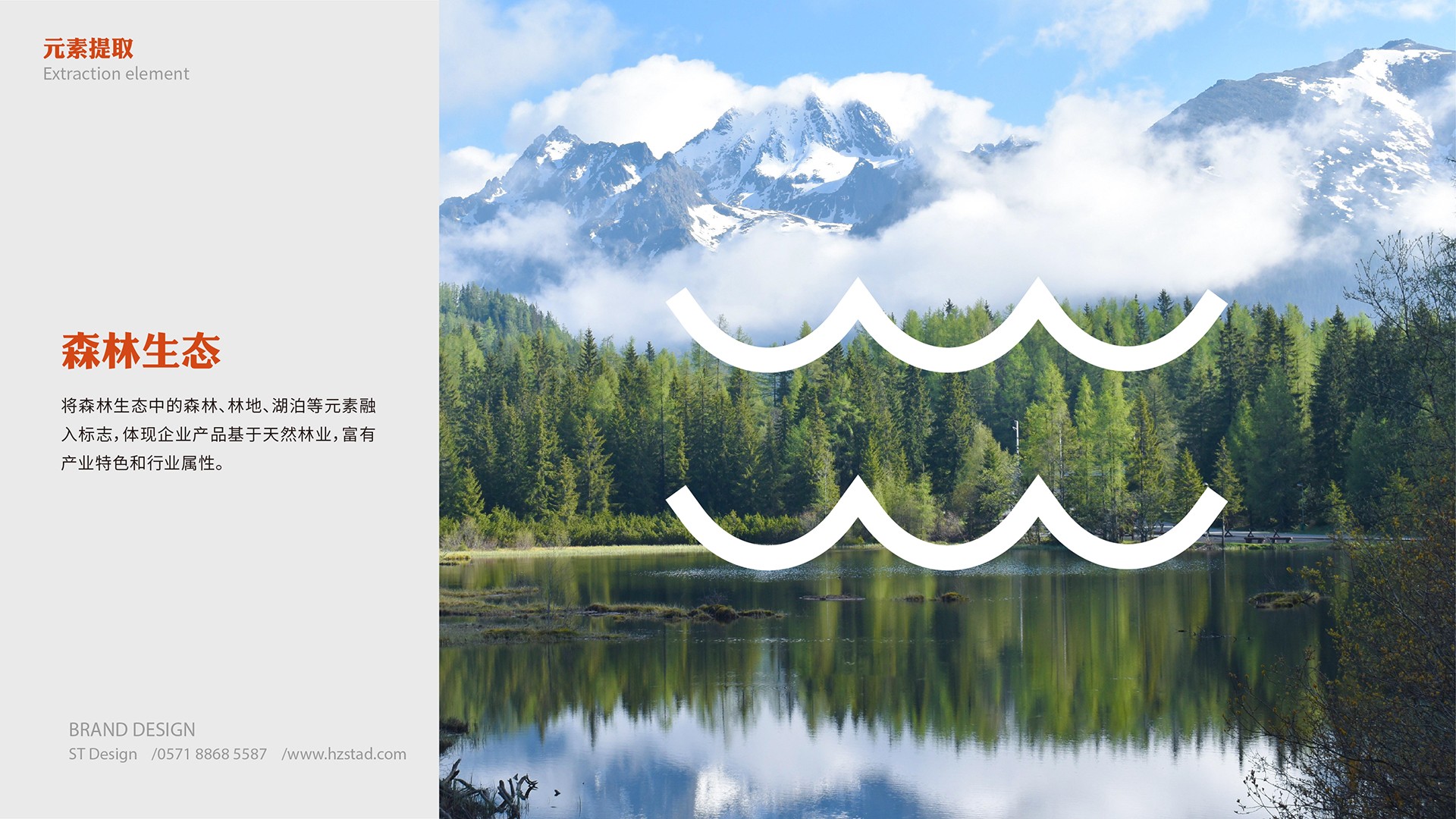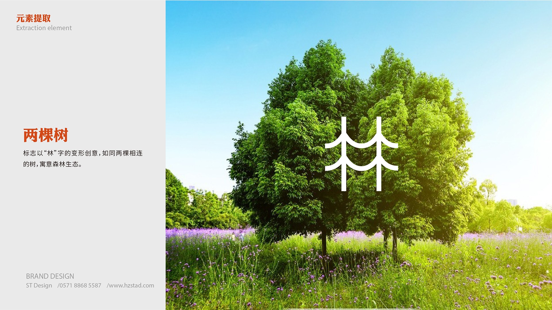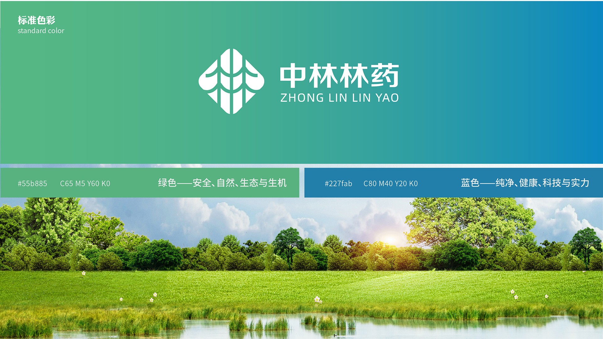 標志以“中林”字體作為創意,林字基于篆體字進行外形設計,有兩重涵義,一是代表兩棵相連的樹,寓意森林生態;二是如兩個牽手的人,代表人與自然和諧共處,代表企業基于林業,積極推動產業互融,促進家民創富增收,實現鄉村振興。