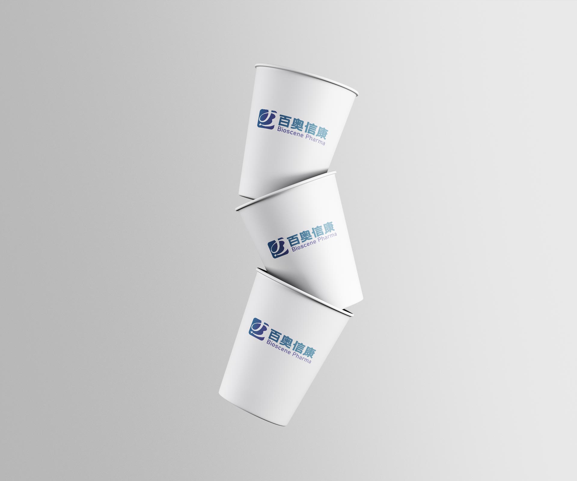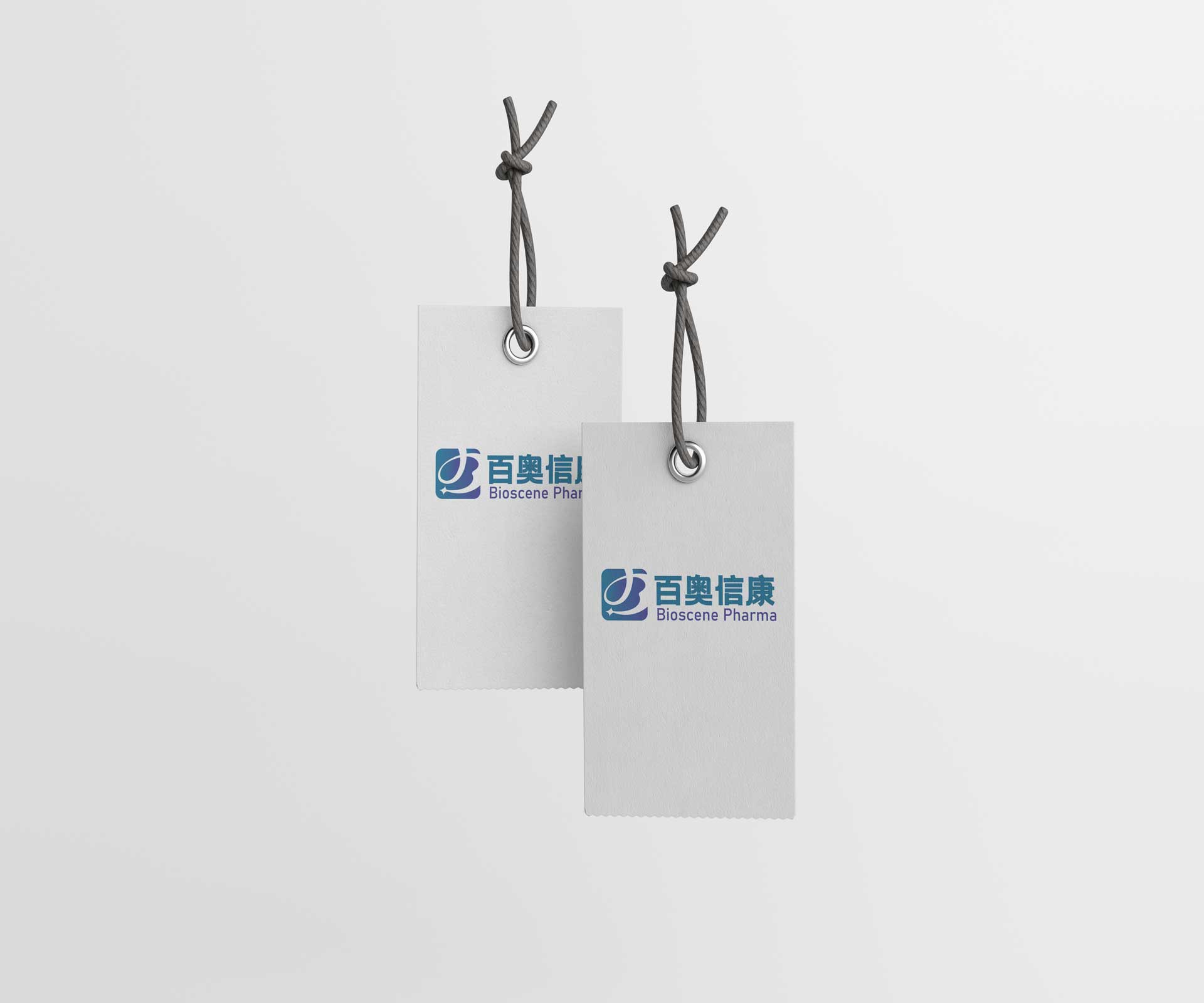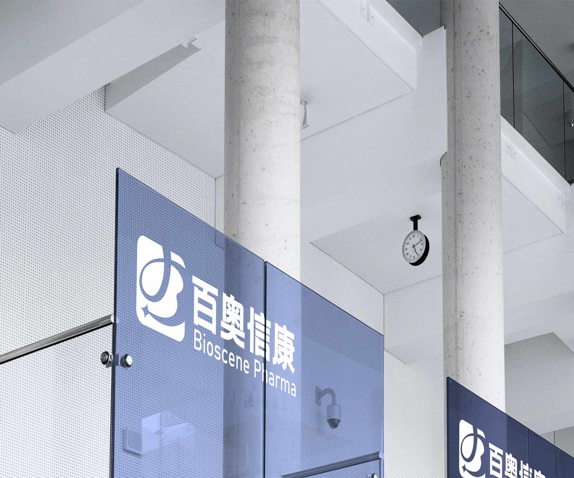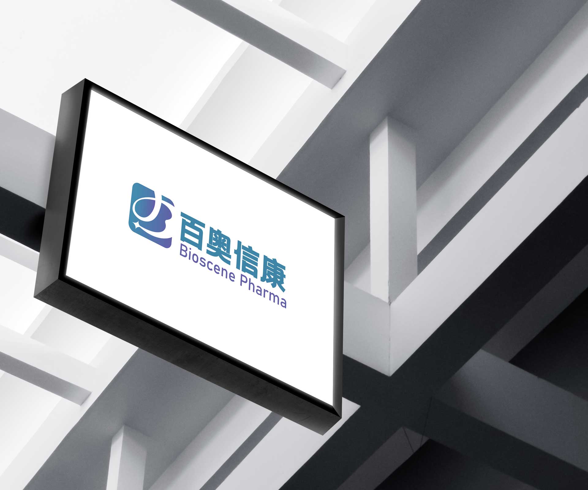 • 中英文品牌名稱“百奧信康”與“Bioscene Pharma”以專業字體搭配,清晰易讀,強化品牌識別。