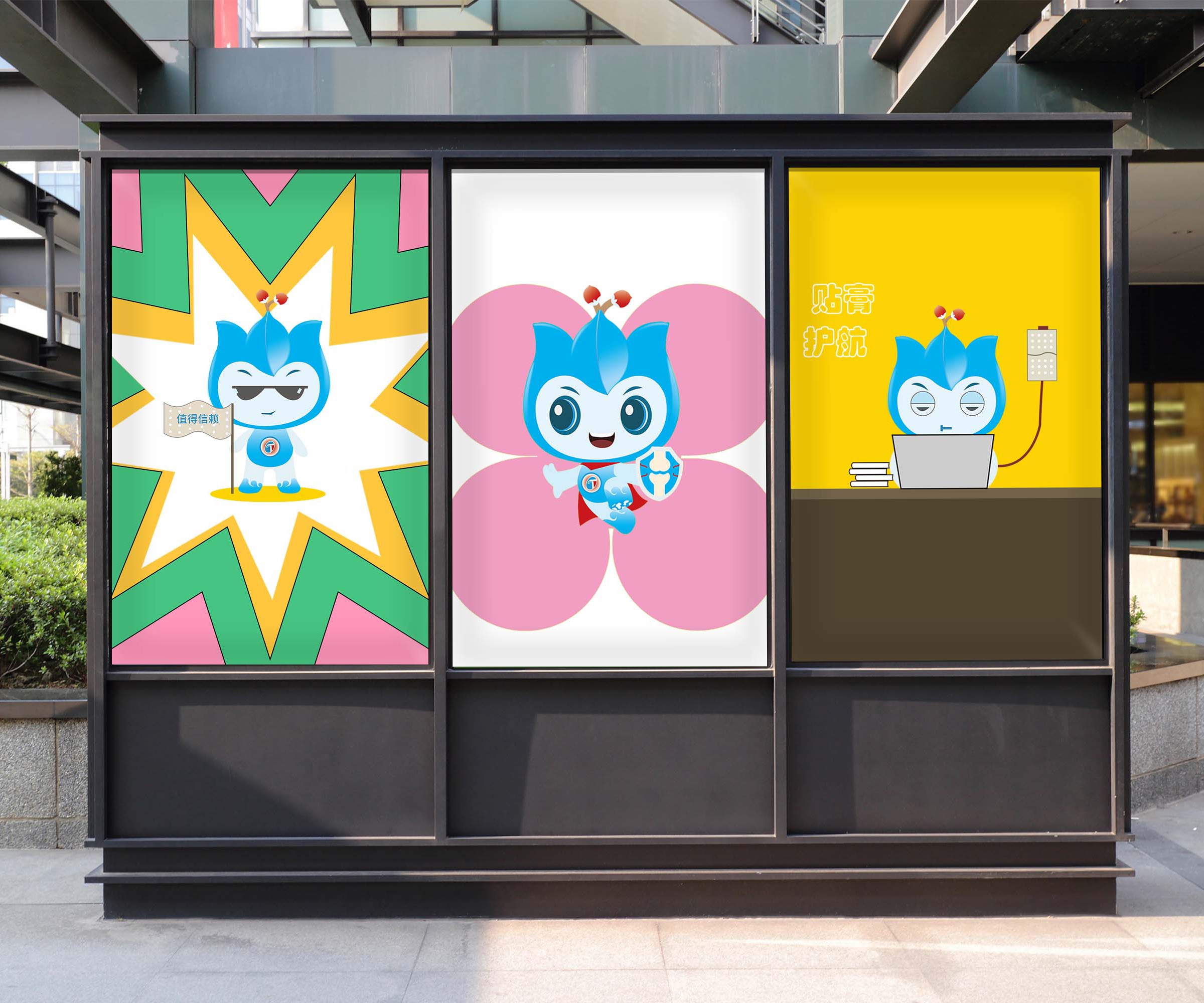 紅藍(lán)配色體系:整體配色沿用華潤(rùn)三九品牌標(biāo)志性的紅藍(lán)組合,確保IP與母品牌視覺(jué)基因的統(tǒng)一,同時(shí)紅色象征活力與溫?zé)幔{(lán)色代表專(zhuān)業(yè)與信賴(lài),共同強(qiáng)化產(chǎn)品屬性認(rèn)知。