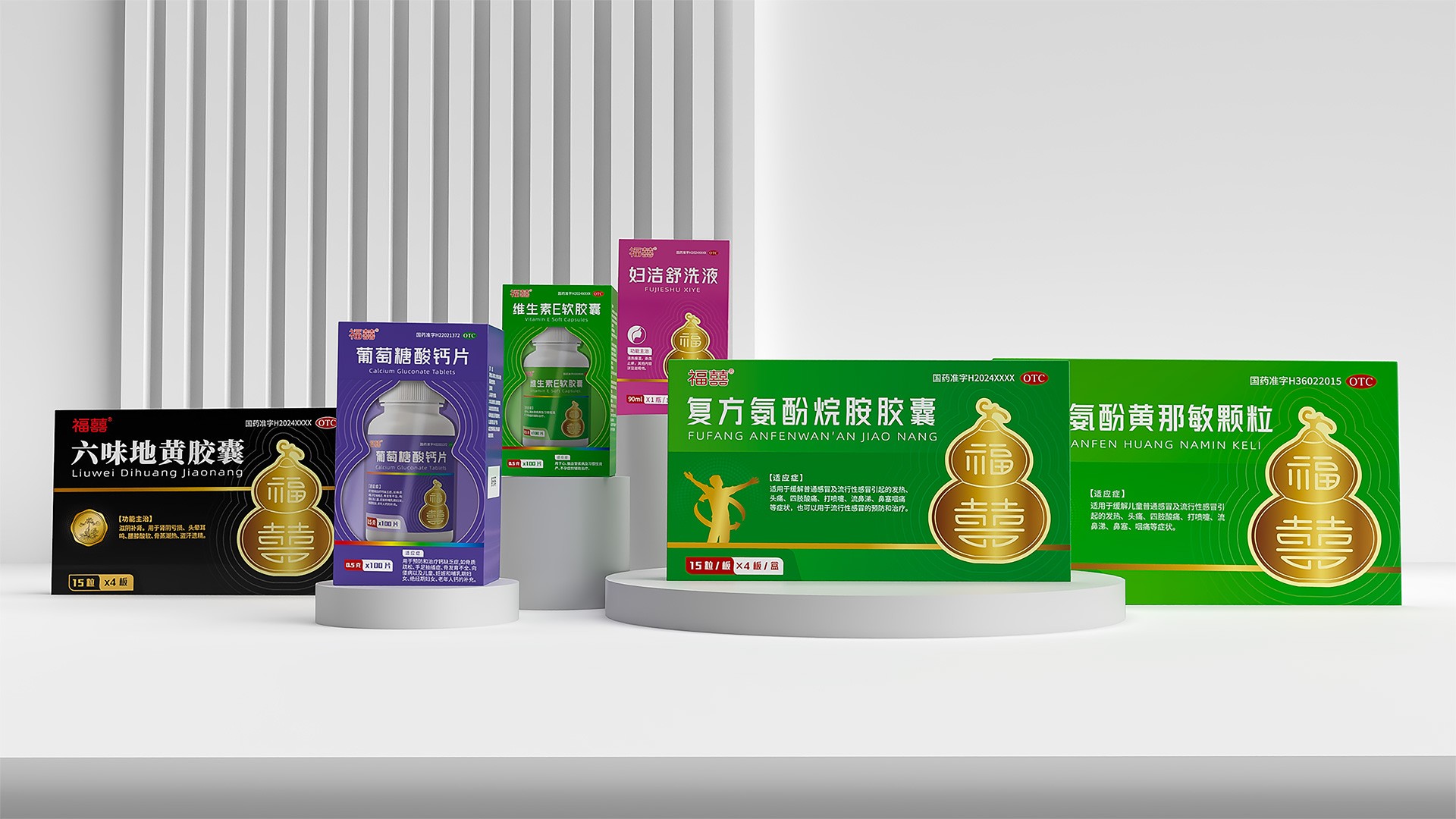 系列化產品包裝設計:針對福囍醫藥的核心產品線,進行了系統化的包裝設計。在確保合規性的基礎上,突出產品特色與賣點,通過統一的視覺語言提升產品陳列的整體美感與品牌檔次,助力終端銷售。